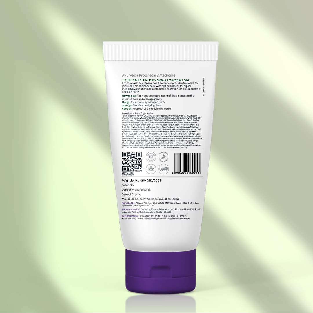 Crafted for those seeking natural, effective relief, this Ayurvedic ointment works holistically to improve blood circulation, strengthen muscles, and enhance overall flexibility. Tested safe and trusted for quality, it’s ideal for daily use to manage chronic pain, post-injury recovery, or age-related stiffness—bringing comfort and wellness back into your life.